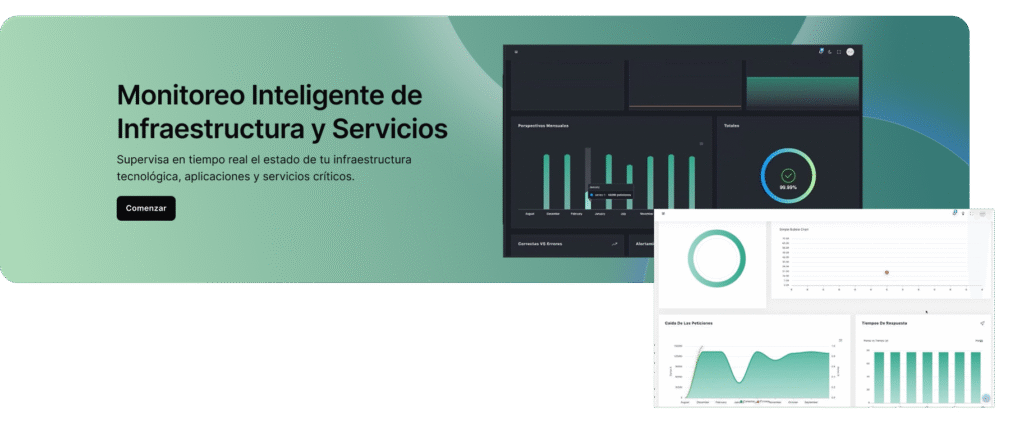 Gestión proactiva de servidores, redes y equipos para asegurar disponibilidad, rendimiento y escalabilidad.